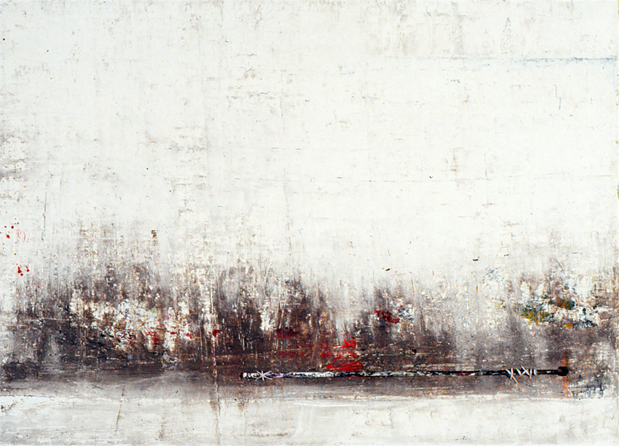 1992 winter landscape with ness coffee I – acrylic, edding, gesso, ness coffee and oil on nettle, 80 x110 cm
