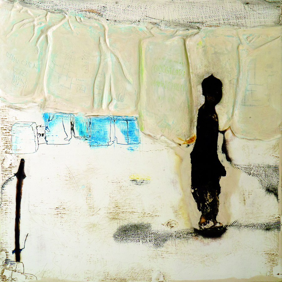 2016 FenceGuests XI – semi reef in acrylic and feasting chalk on wood panel, 70 x 70 cm